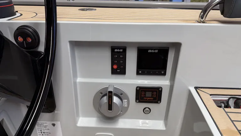 Saffier 33 Demo-Yacht 2025 mit ‚dusty grey‘ Rumpf und light grey Cockpit und Deck. Elektro Torqueedo Antrieb und Carbon-Lake-Rigg. Die Bilder entsprechen Katalogbildern und differieren vom beschriebenen Boot. Eine Wasser-Liegeplatzmöglichkeit kann in Bottighofen angeboten werden.